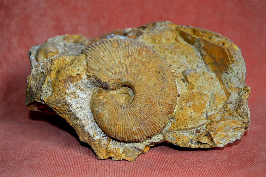 Az ammoniták családjába tartozó Pleuroceras spinatum egy példányának fosszílis ház darabja a földtörténeti júra korból. A kb. 170 millió évvel ezelőtt élt állat vázát finomszemcsés mélytengeri agyagos üledékes kőzet zárta magába, mely 1500-2000 méteres mélységben keletkezett és a fosszilizálódás feltételeit tökéltesen biztosította. Lelőhelye Drügendorf, Bajorország.