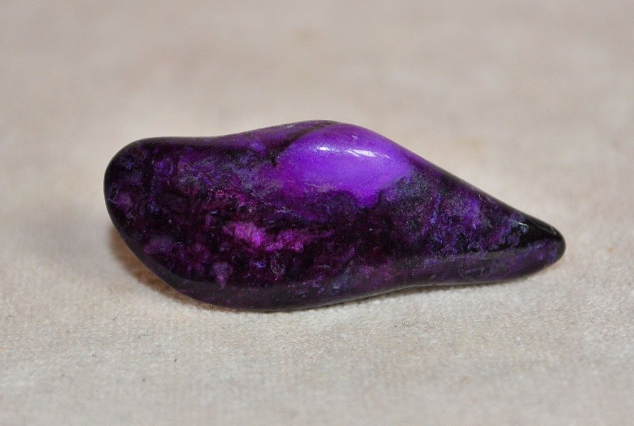 Sugilit marokkő. Dél-Afrikából származó, kiváló lila színű, ékszer minőségű sugilit darab. A sugilit bonyolúlt összetételű litium és mangán tartalmú szilikát ásvány, melynek különleges lila szinét a mangántartalom okozza. Nevét egy japán kutatóról (Dr. Sugi) kapta, aki első darabjait 1944-ben találta egy kirándulás alkalmával. Ezoterikában az új kor köve, keresett az ékszeriparban és kiemelt fontosságú a nemeskőgyógyászatban is, ahol az immunrendszer egyensúlyának köve.