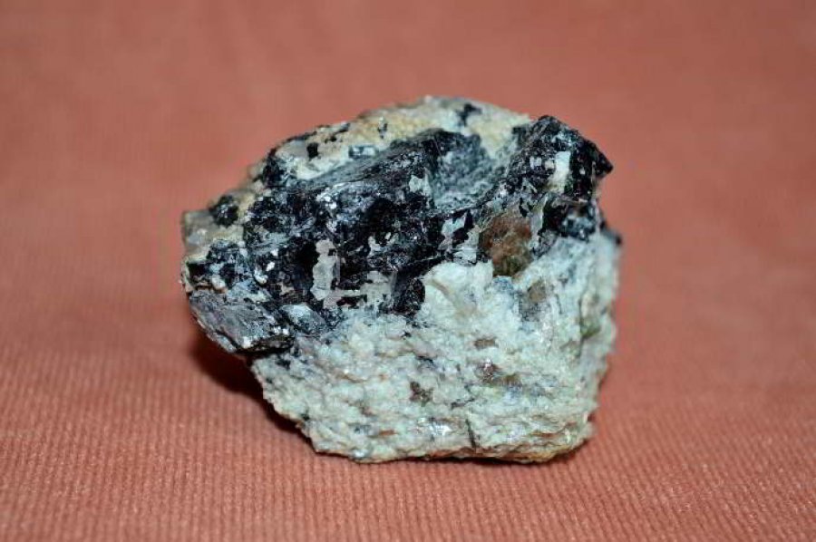 Piorolúzit ásvány. Kémiai összetétele mangán-oxid, fontos mangán érc, de kevés helyen dúsul műrevaló mennyiségben. Kristályai vékony szálasak, tűszerűek, rostos halmazokat alkotnak. A bemutatott darab kristályai 2 cm-es nagyságúak és marokkói lelőhelyről származnak.