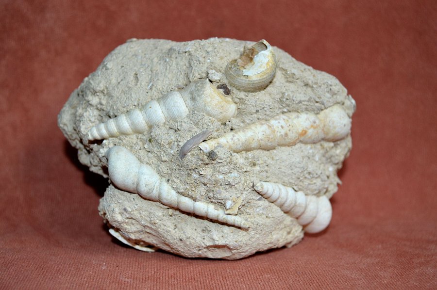 Miocén korú, 20 millió évvel ezelőtt élt Turitellák kövesedett háza agyagmárgában. A házak szinte tökéletes épségűek, méretük 4-6 cm.