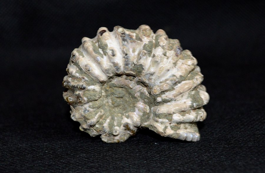Az ammoniták családjába tartozó Pleuroceras spinatum egy példányának fosszílis ház darabja a földtörténeti júra korból. A kb. 170 millió évvel ezelőtt élt állat vázát finomszemcsés mélytengeri agyagos üledékes kőzet zárta magába, mely 1500-2000 méteres mélységben keletkezett és a fosszilizálódás feltételeit tökéltesen biztosította. Lelőhelye Drügendorf, Bajorország.