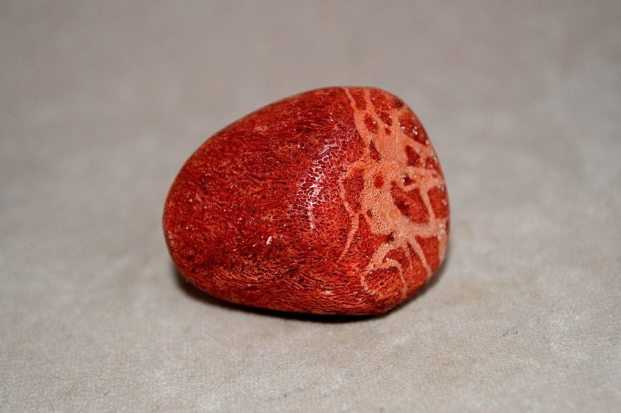 Vörös szivacskorall ág egy darabja Vietnamból. Pompás természetes vörös színű, kiváló rajzolatú enyhén csiszolt példány. Minősége és tömörsége okán ékszeripari felhasználásra is alkalmas.