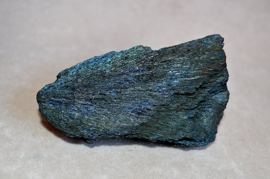 Piorolúzit ásvány. Kémiai összetétele mangán-oxid, fontos mangán érc, de kevés helyen dúsul műrevaló mennyiségben. Kristályai vékony szálasak, tűszerűek, rostos halmazokat alkotnak. A bemutatott darab kristályai 2 cm-es nagyságúak és marokkói lelőhelyről származnak.
